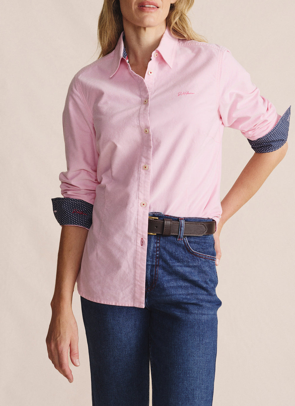 Inside the collar, cuffs, and placket, you’ll find a micro polka dot cotton poplin lining — just a touch of class for those who know. The signature S. Kidman red stitching adds heritage detail, and bar tacks at key stress points mean it’s made to last.