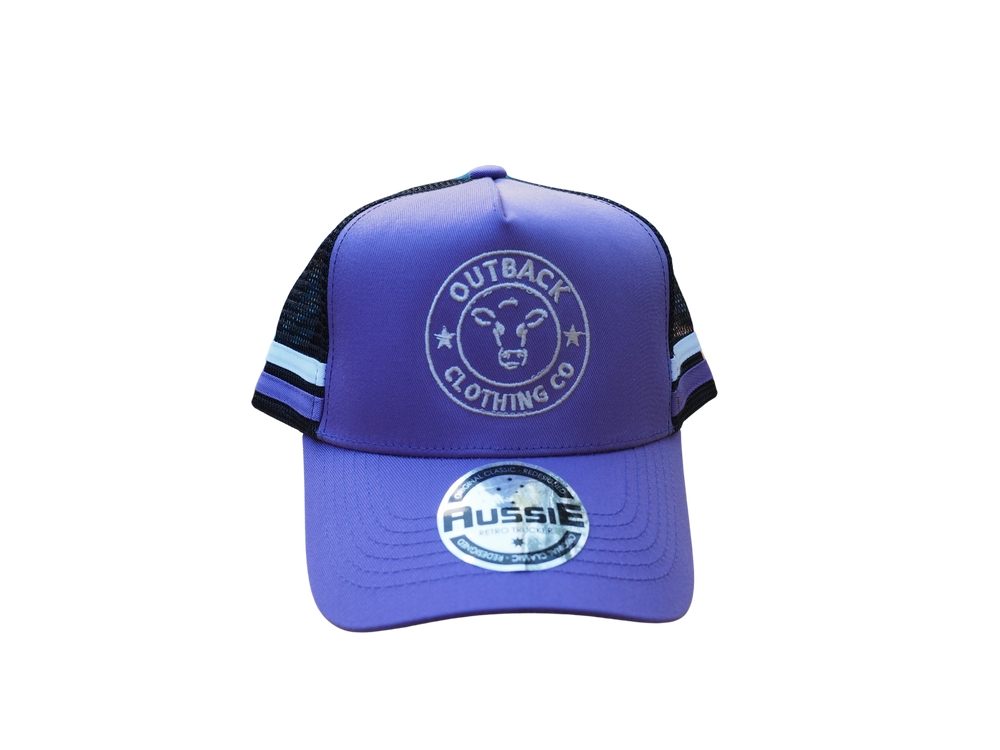 Bold Purple Outback Design – Deep purple front with crisp white Outback Clothing Co embroidery for standout Aussie style.