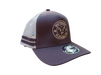 Bold brown front panels meet a breathable sand mesh back to keep you cool while holding a structured shape. The standout detail: double brown stripes along the mesh sides for a distinctive, athletic look that separates this cap from standard truckers.
