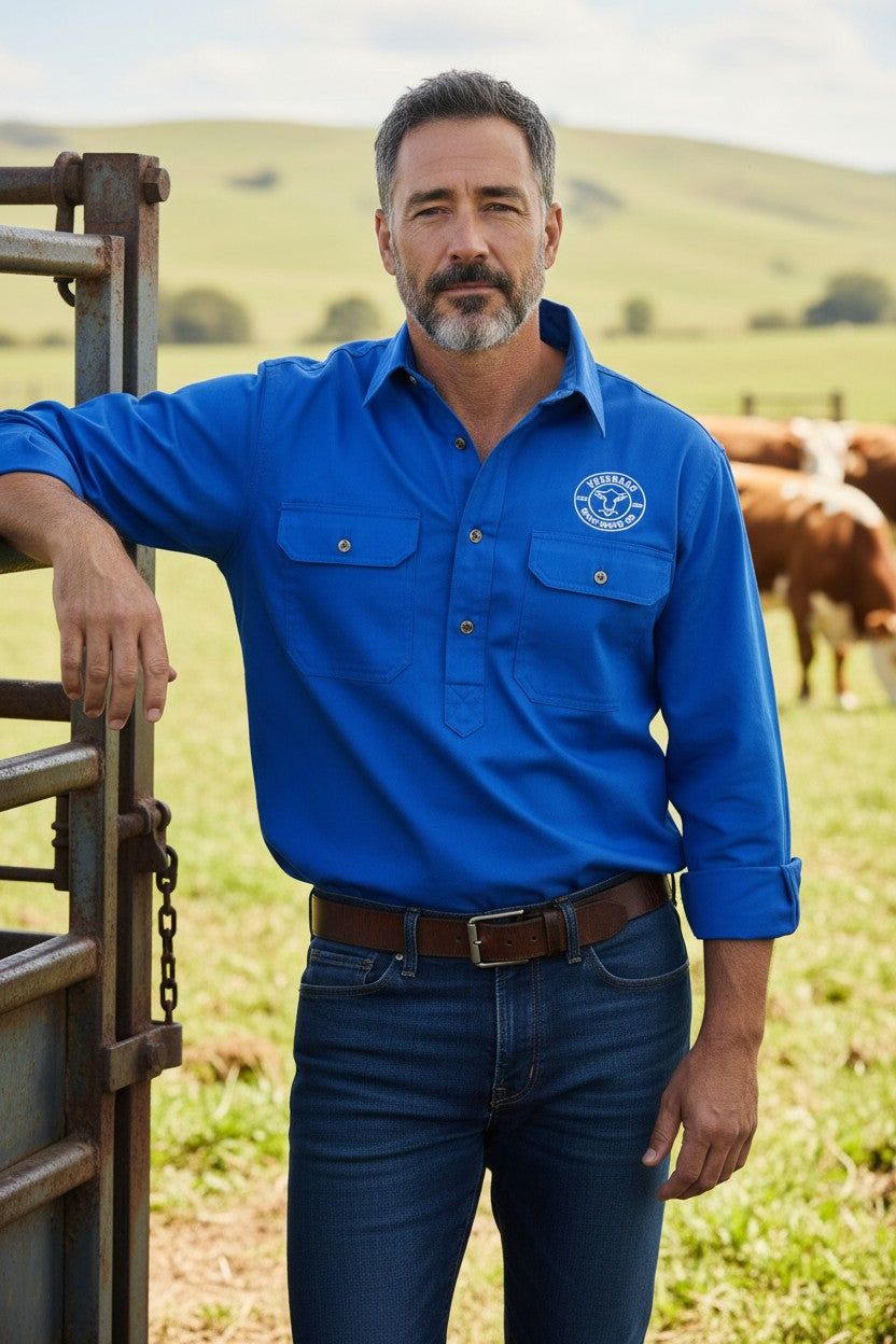 Built for dust, heat, and hard work, The Fitzroy celebrates the rugged character of Australia’s great river country. Crafted from durable, breathable cotton with a traditional half-button front, it’s made for long days on the station, in the yards, or out on the open road.
